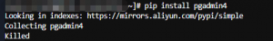 直接 pip install pgadmin4 被 Killed,这通常是 系统资源不足(内存/CPU)导致进程被操作系统直接终止,而不是 pip 或包的问题。